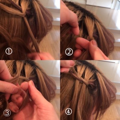 上の写真のように三つ編みをして真ん中にきた毛束を