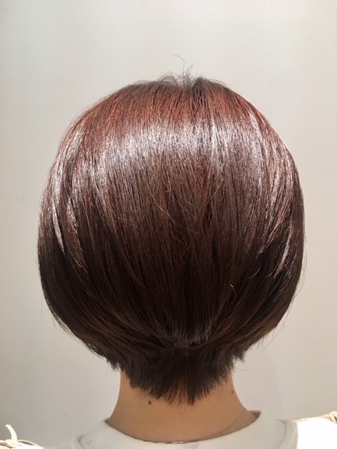 ボブスタイルから襟足をすっきりさせたショートヘアに