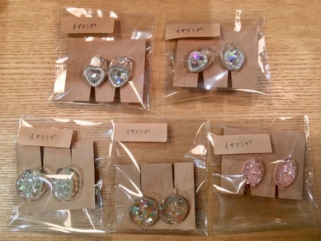 ハンドメイドアクセサリーのイヤリングタイプが
