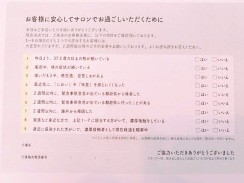 ご自身の体調に関するチェックシートのご記入をお願いしております